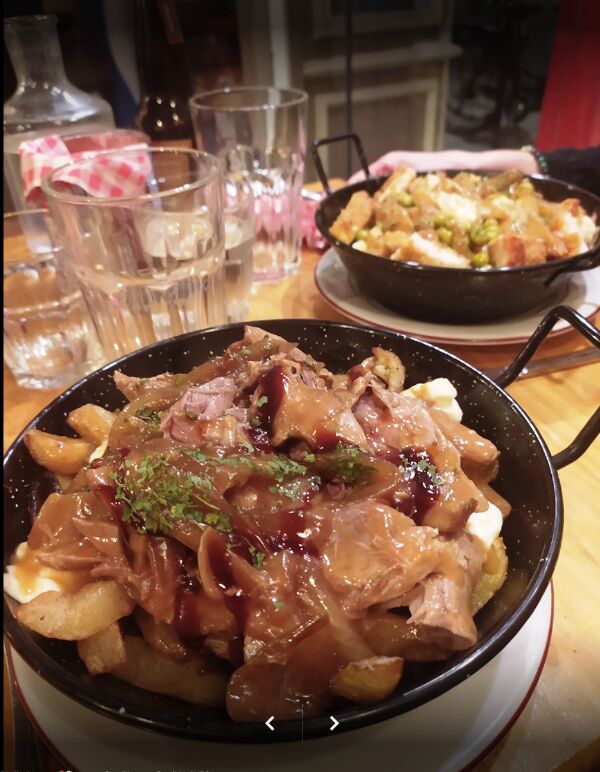 La poutine est plat d'origine Québécoise, constituée de vraies patates frites Maison et de Fromage en grain le vrai "scouik-scouik" que l'on recouvre généreusement d'une sauce brune issue d'une recette de famille.